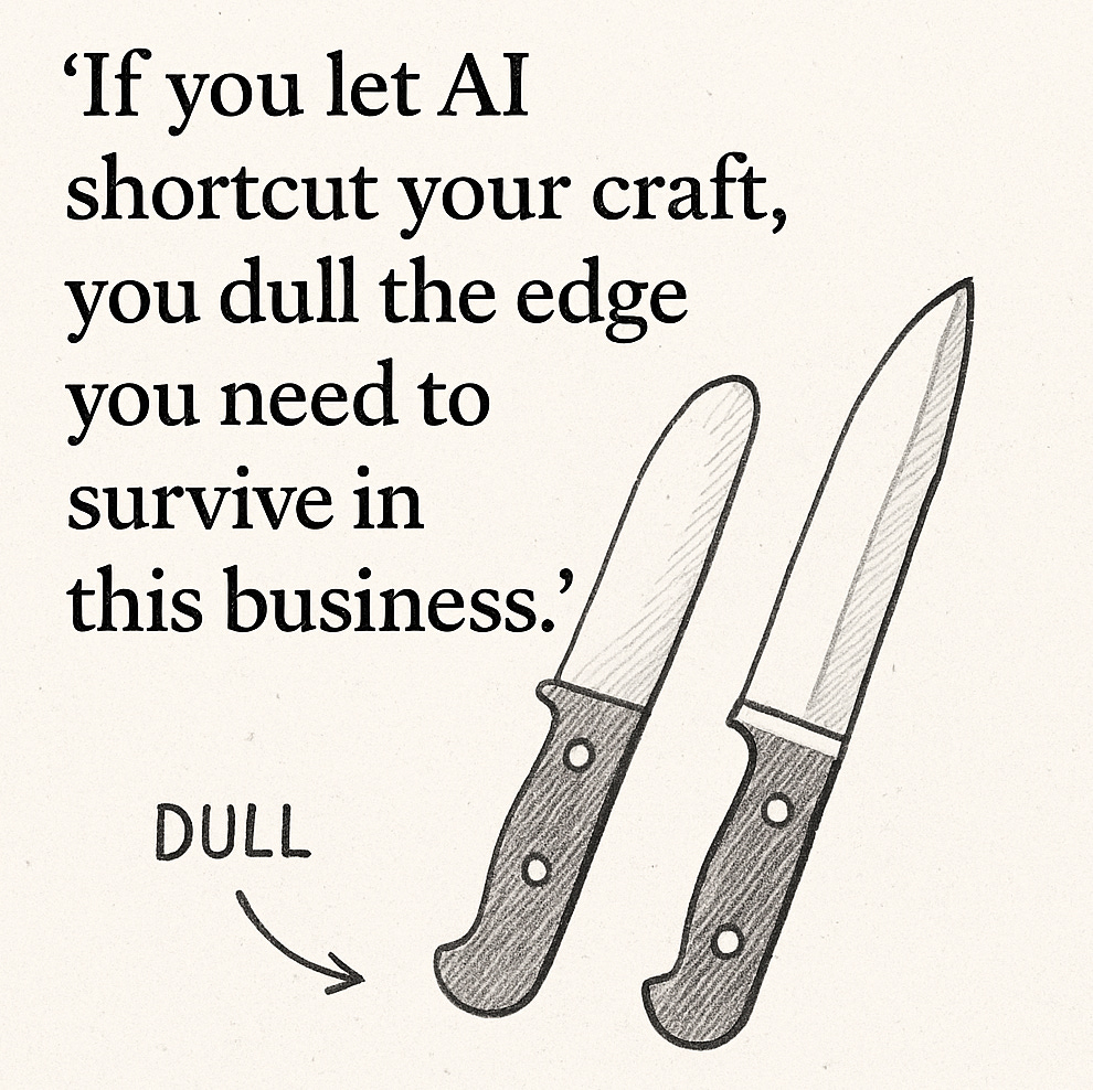 That’s the risk. If you let AI shortcut your craft, you dull the edge you need to survive in this business.