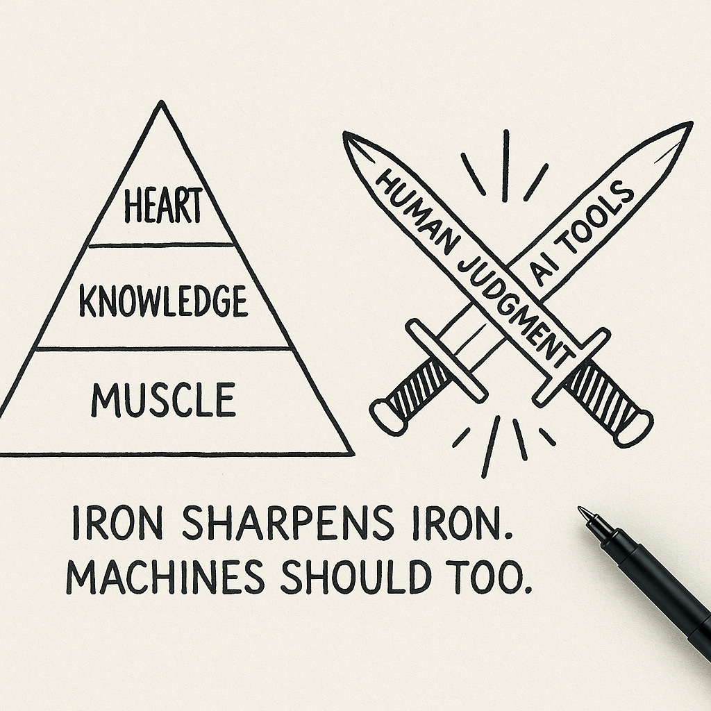 It made me think of my favorite proverb: Iron sharpens iron. I’ve always applied that to people. Now I think it applies to machines too. Some tools sharpen you. Others dull you. The real test is whether they suppress your human talent or amplify it.