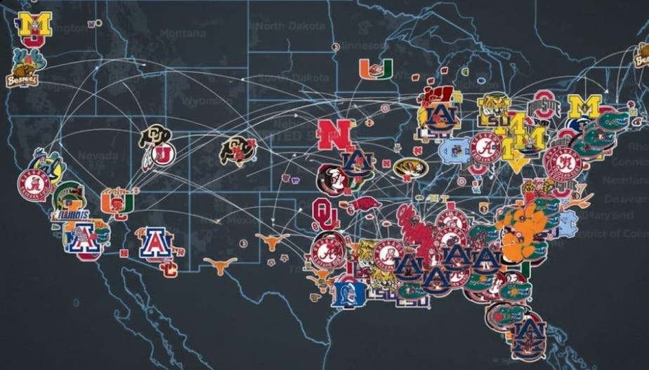 Conference realignment and NIL didn’t just reshuffle logos. They erased the idea of protected recruiting territory. There used to be an assumption that certain programs would always dominate their regions. USC gets California. THE (so annoying) Ohio State gets Ohio. Georgia gets Georgia. Alabama gets Alabama. Florida gets Florida.